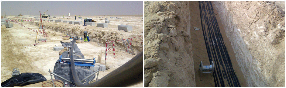 - Supply, installation, testing and commissioning of all kinds of LV, MV and HV cables upto 33kV and Fibre Optic Cables.